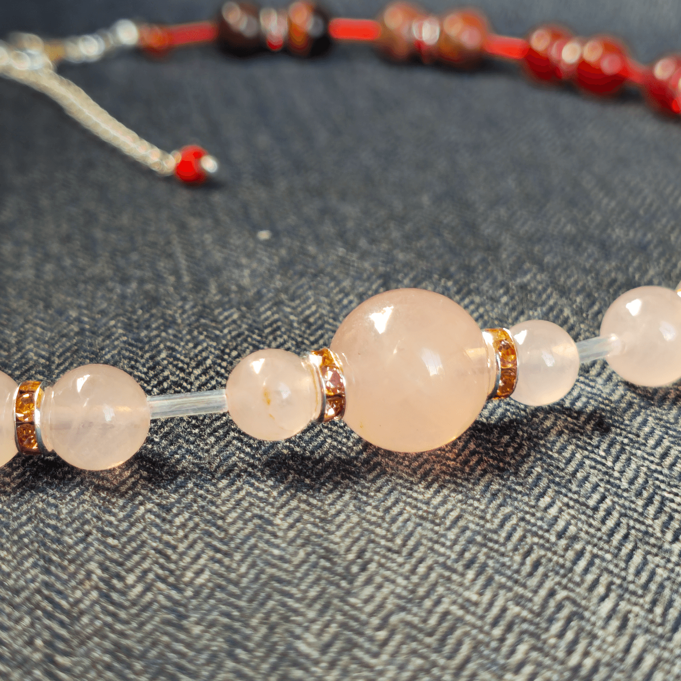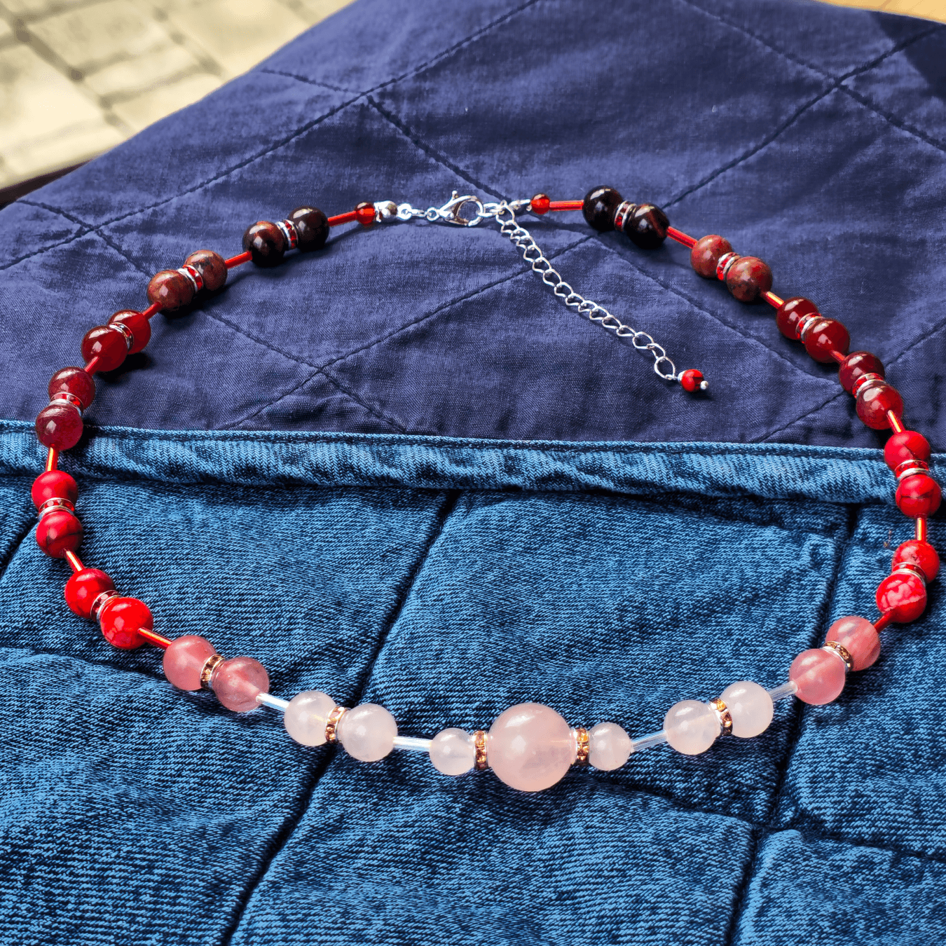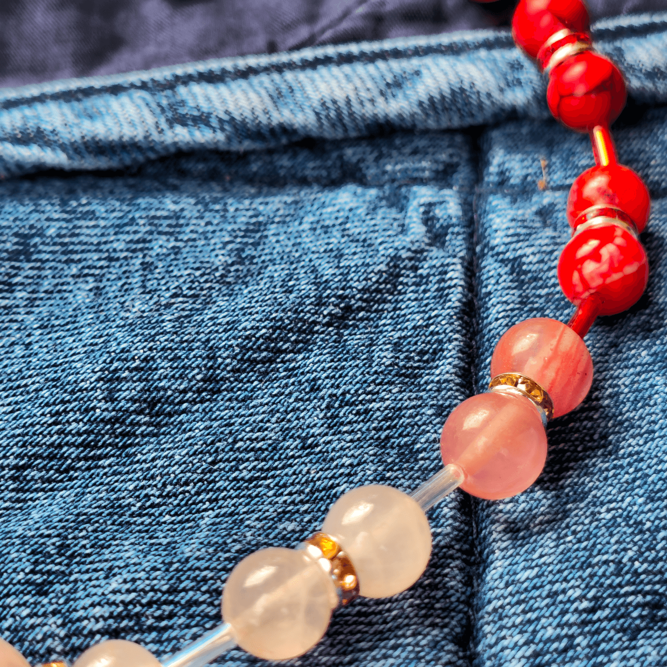 The Red Romance necklace is part of our Rhythm Collection — each piece crafted to reflect a unique mood and energy. This design blends romantic shades of red and pink with warm metallic details, creating a vivid accent for your everyday or evening style.